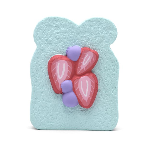 まるで本物のようなトーストの質感に、鮮やかないちごがのった、見ても触っても楽しいスクイーズです。