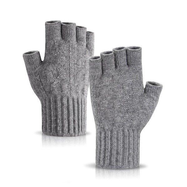 Kiiwah Fingerless Gloves for Men and Women, Knitted Finger Gloves Without Fingertips, Soft Fleece Gloves Without Fingers for Typing, Cycling, Driving, Camping, Running, gray