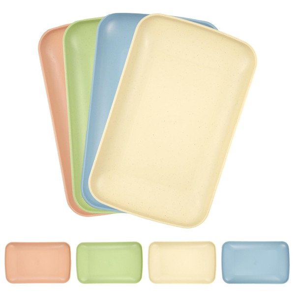KiKiHong Small Plastic Tray Reusable Rectangular 24.5 x 14.5 cm Tray for Kitchen Restaurant Cafe 4 Colors 4 Pack