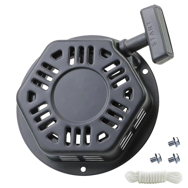 - Package: 1×Recoil Pull starter, 1×Pull Rope (145cm) and 3×Screw Bolts. (Note: Applies only to devices with 3 screw holes. Please check the pawl and rachet type, nut hole positions and product sizes)