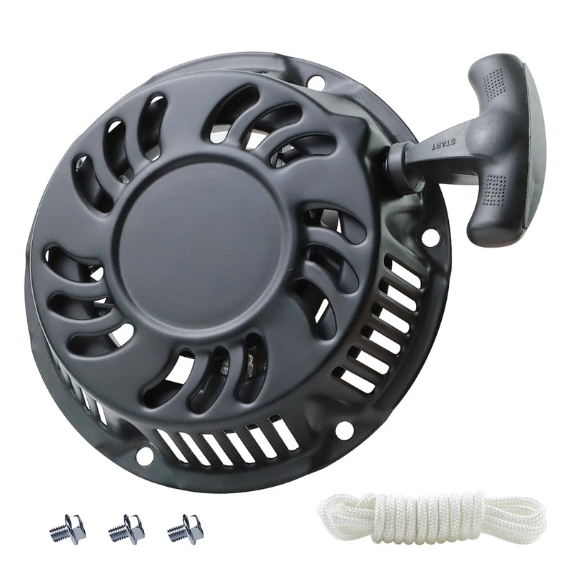 - 【Package】1×Recoil Pull starter, 1×Pull Rope (130cm) and 3×Screw Bolts. (Note: Applies only to devices with 3 screw holes. Other holes are used to adjust the direction of the starter. Please check the pawl and rachet type, nut hole positions and product sizes)