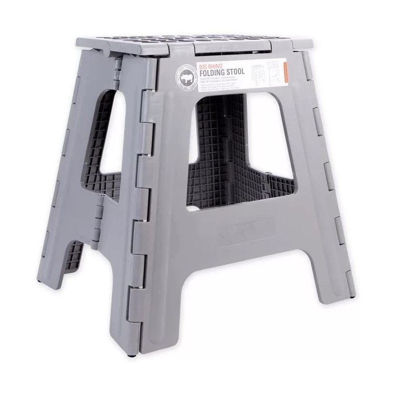 Kikkerland Foldable Sturdy Non- Slip Compact Lightweight Plastic Rhino II Step Stool, Grey, Holds up to 300 lbs, for Kitchen, Bathroom