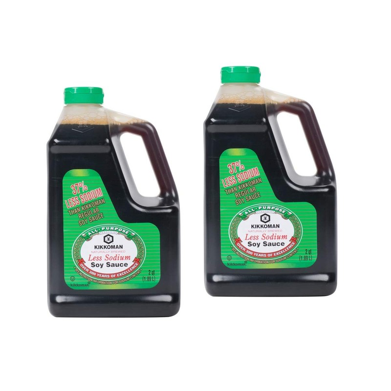 Kikkoman 38% Less Sodium Regular Soy Sauce Traditional Brewed 2 - 2qt./1.89L each