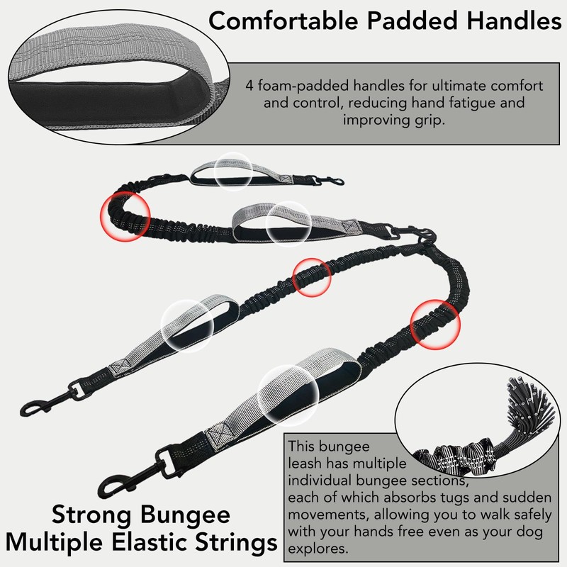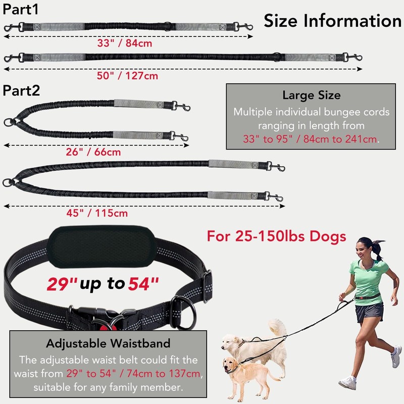 - 【Versatile Hands Free Dog Leash】It can be used as a single dog leash or double leash for 1-2 dogs, suitable for medium and large dogs. Our waist dog leash has 4 padded handles for ultimate comfort and control, reducing hand fatigue, improving grip and ensuring a more comfortable and secure dog walk!