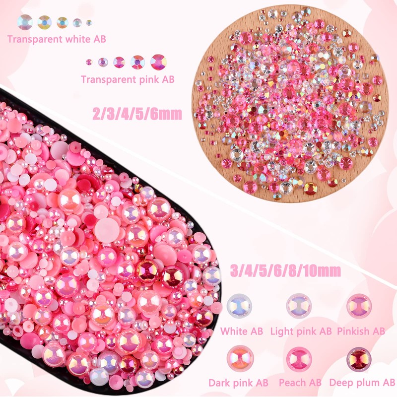 Kikonoke 75g Mix Resin Pearls Rhinestones Kit, 3-10mm Half Pearls and 2-6mm Flatback Rhinestones for Nail Art Decoration Shoes Clothes Tumblers Scrapbooking Craft DIY (Pink)