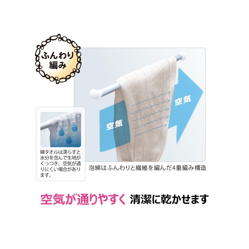 - An original knitted foaming cotton body towel made of 100% natural cotton on the surface that touches the skin