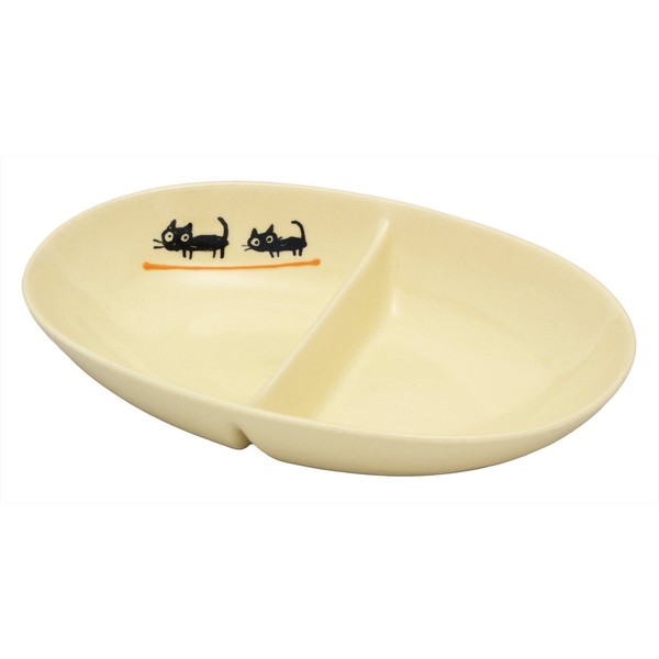 Kilamoto SOUSEN Medium Plate, Orange, 7.1 inches (18 cm), Setoyaki, 2 Partition Plate, Black Cat Pattern