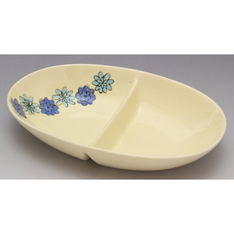 Kiln SOUSEN Medium Plate, Blue, 7.1 inches (18 cm), Setoyaki, 2-Divider Plate, Tri-Pattern