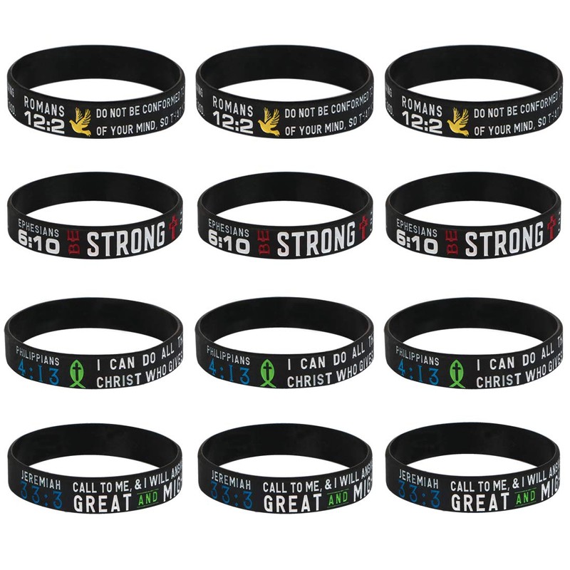 - Great Value - includes 12 pcs of high quality silicone wristbands with popular Bible verses at unbeatable price