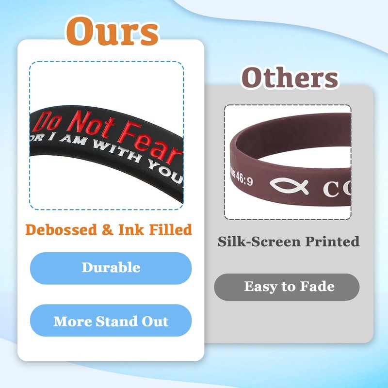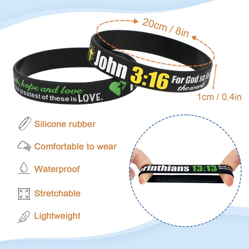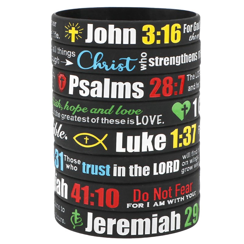 - GREAT VALUE - includes 8 pcs of uniquely designed silicone wristbands with popular Bible verses at unbeatable price