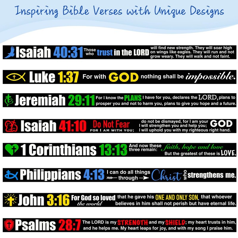 - 8 INSPIRING BIBLE VERSES - John 3:16, Philippians 4:13, 1 Corinthians 13:13, Psalms 28:7, Luke 1:37, Isaiah 40:31, Jeremiah 29:11, Isaiah 41:10