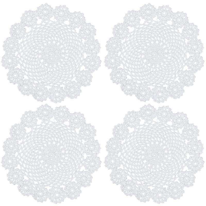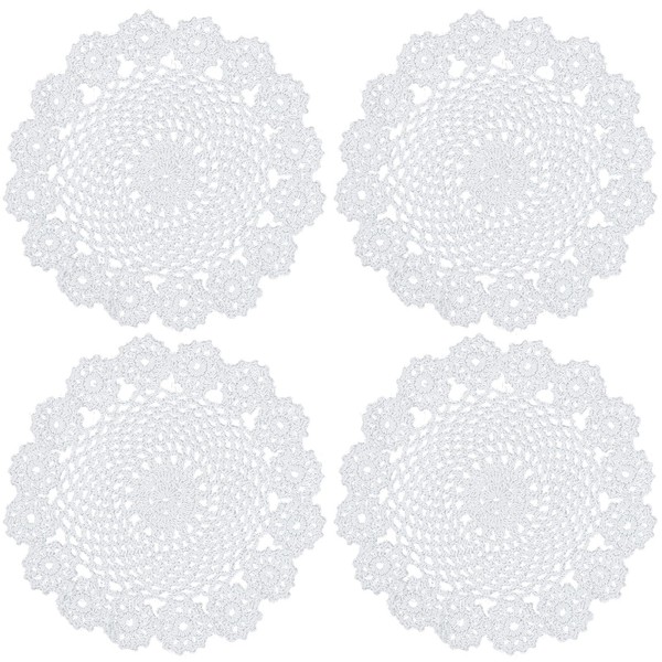 kilofly Crochet Cotton Lace Table Placemats Doilies Pack, 4pc, White, Garland, 7 inch