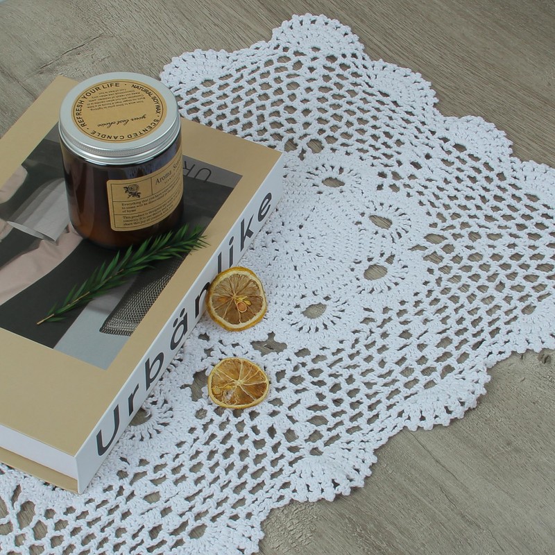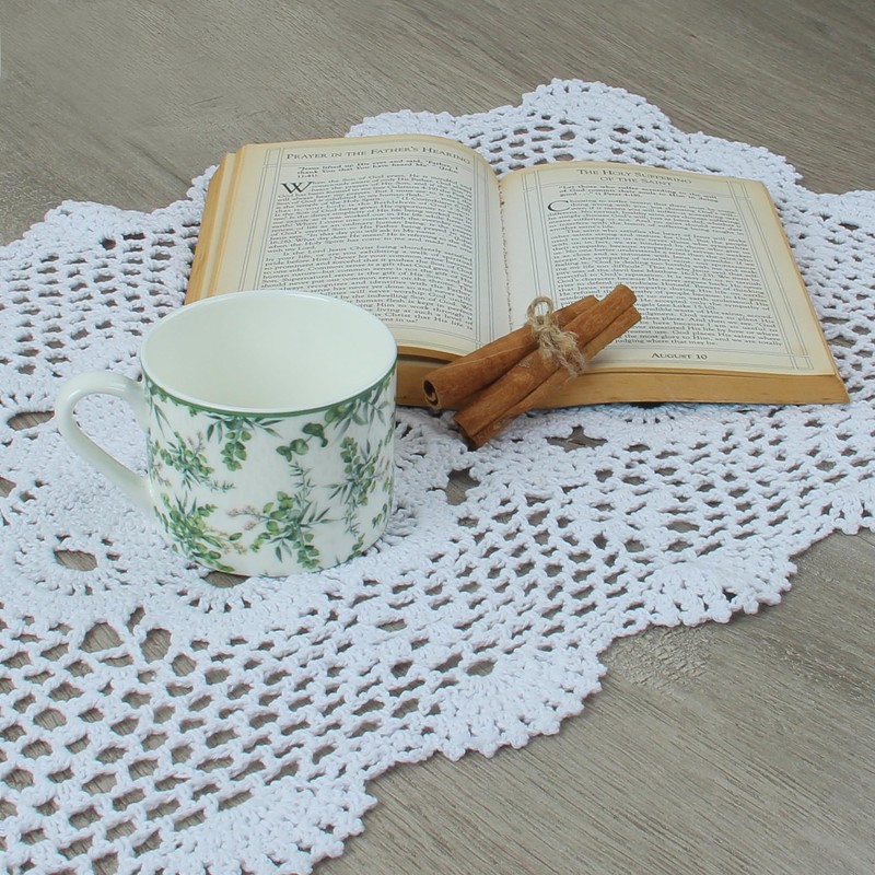 - Oblong shape with 2 centered knitted blossoms pattern - Harmonious with cups, glasses, dishes or other tabletop items