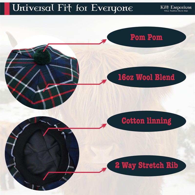 - ππππ¦π¦ππ πππ¦πππ‘ & ππ¨π₯ππππππ§π¬: Our Scottish tam hat is made of premium wool and is warm and long-lasting. Our Tam Hats' unique toorie (pom-pom) and outer hatband give your Highland clothes an extra dash of style and toughness.