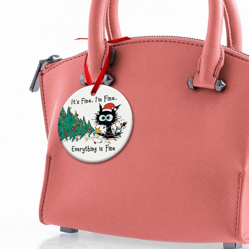 Kilyhome Funny Christmas Hanging Ornaments, Black Cat Tree Ornament, Gifts for Cat Lovers - It's Fine I'm Fine Cat