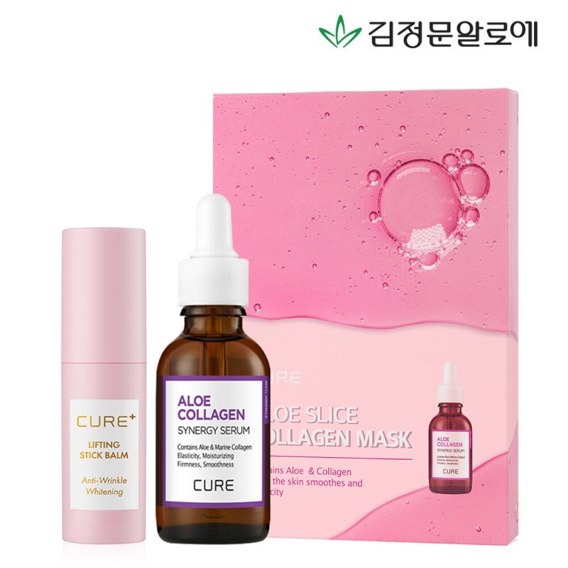 Kim Jong -moon Aloe Elastic Care Collagen Mask Pack+Collagen Serum+Lifting Stick Night / 김정문알로에 탄력케어 콜라겐마스크팩+콜라겐세럼+리프팅스틱밤