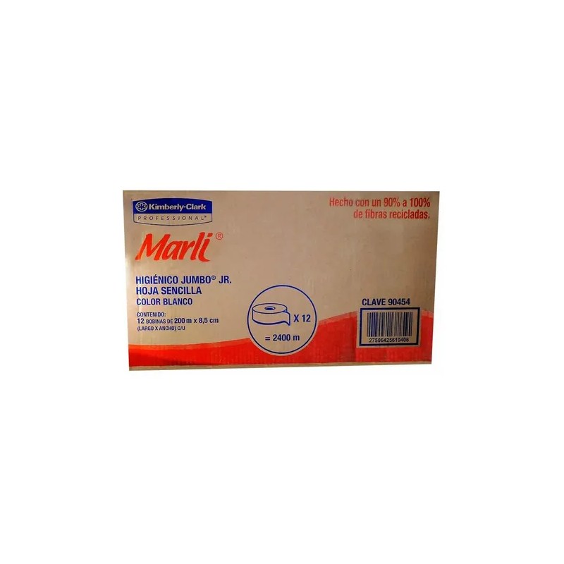 Caja con 12 Bobinas de papel higiénico de 200 mts de largo x 8.5 cm de ancho cada una.