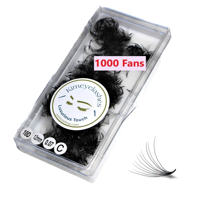 Kimeyelashes 4D 5D 6D 7D 8D 9D 10D - 0.07 C and D Curl 1000 Premade volume fans loose Fans, Handmade eyelash extensions supplies Russian volume lash promade fan (10mm, 7D - Curl C)