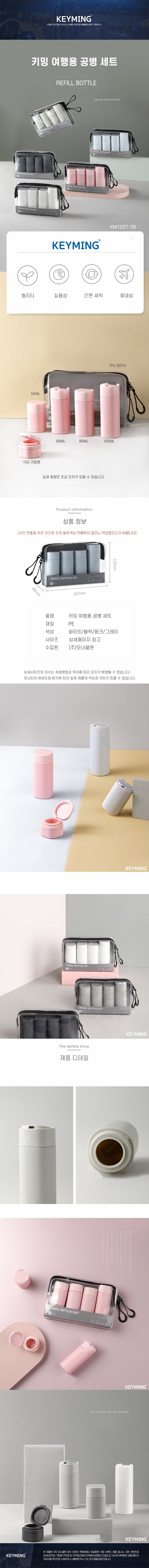 키밍 여행용 공병 6종세트 심플 호텔 워시백 리필 - 핑크