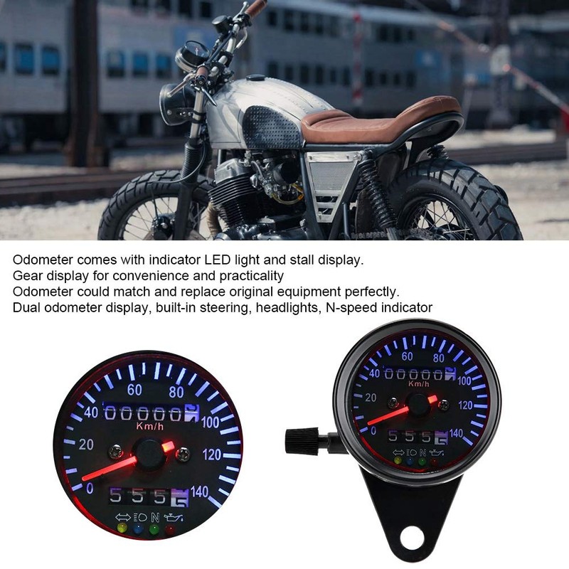 KIMISS 12V Universal Moto Odómetro, retroiluminación LED Motocicleta Dual Odometer Velocímetro Gauge Kit Cafe Racer