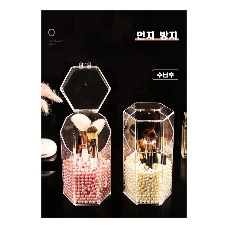 키밍 아크릴 메이크업브러쉬 수납통 투명 먼지방지 덮개 - 사각형-핑크 진주
