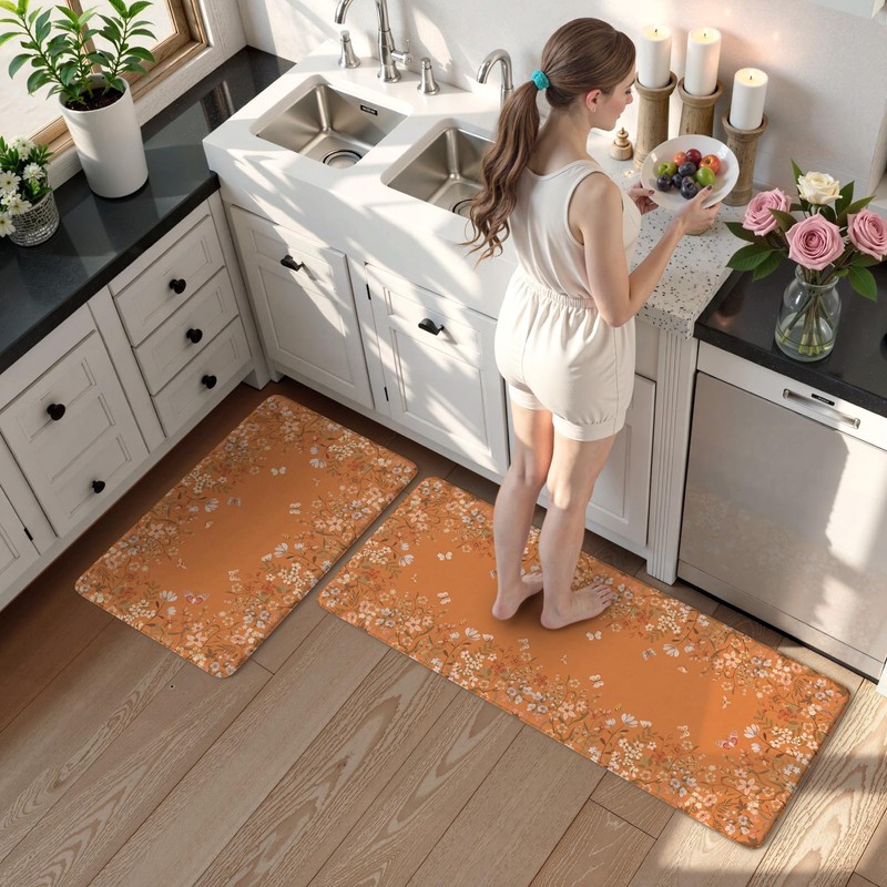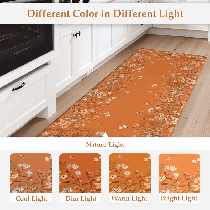 - Versatile:Boho style kitchen rug with butterfly flower pattern easily to match your kitchen decor, bright your home.Soft thick foam provides ample support for standing in kitchen sink, laundry room, office, bathroom, dinning room, or any other high-traffic area