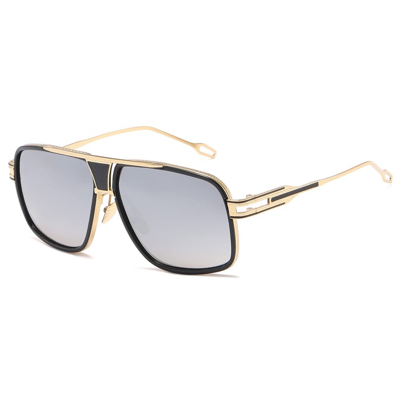 Kimorn AE0336 men’s retro classic sunglasses with metal frame, Gold & Silver