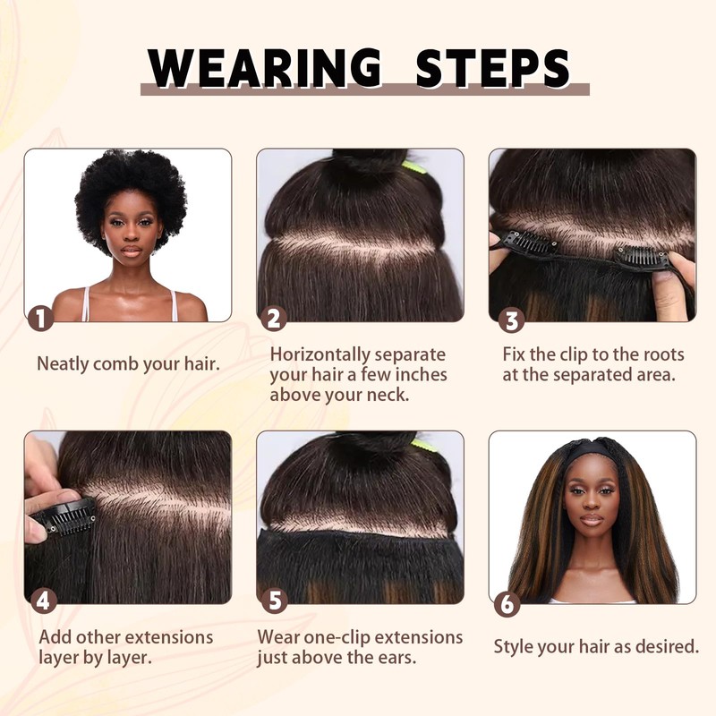 - Economical: Our top-rated clip in human hair extensions are designed with U-shaped metal cards that is not only invisible but also replaceable. This means you can enjoy your beautiful hair for months, saving money while looking fabulous. With proper care, these durable extensions can last 2-3 months or even longer, making them a smart investment for your hair styling needs.