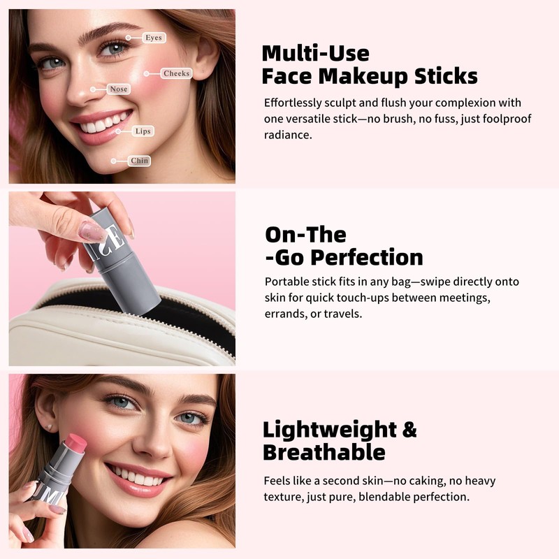 - Cream Contour Stick & Blush Makeup: These make up sticks with smooth creamy formulas and high pigments that blend effortlessly on all skin tones. Leaving a lightweight, non-greasy feel natural finish in second