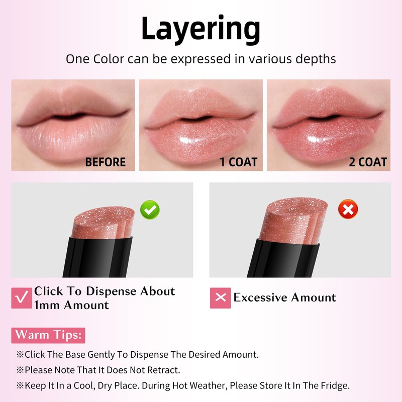 - Glossy Texture: Say goodbye to sticky lip products! This solid lip lipstick features a glossly texture that glides on smoothly, leaving your lips feeling soft and moisturized without any stickiness or dryness