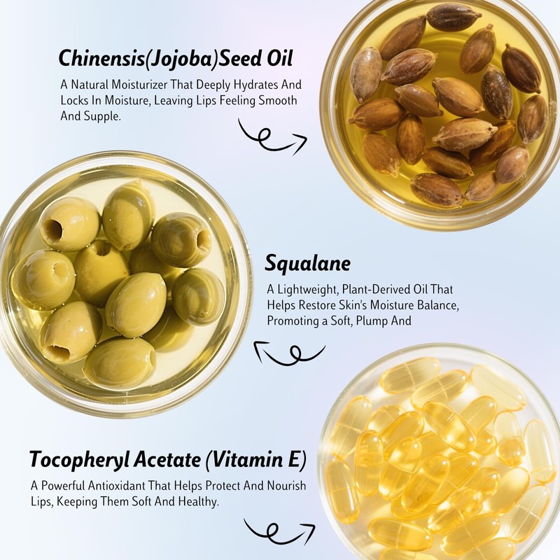 - Hydrating-Shine Lip Oil: This non-sticky lip oil is infused with Vitamin E, Jojoba Seed Oil, and Squalane to deeply hydrate, smooth fine lines, and lock in moisture. Say goodbye to dry lips and hello to a juicy, glass-like shine that keeps lips soft, plump, and comfortable all day.