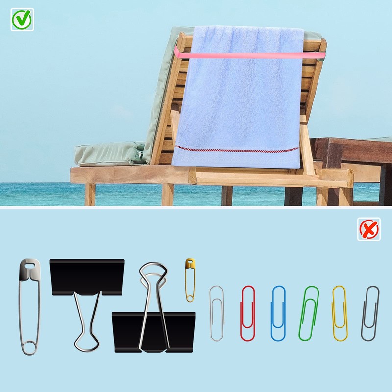 - Wide Application: These beach towel bands can secure many items such as shirts, smocks, notebooks, papers and other everyday items. Hanging wet swimsuits to dry is also fine, ideal for many outdoor activities, such as beaches, swimming pools, cruise ships, camping, and more.
