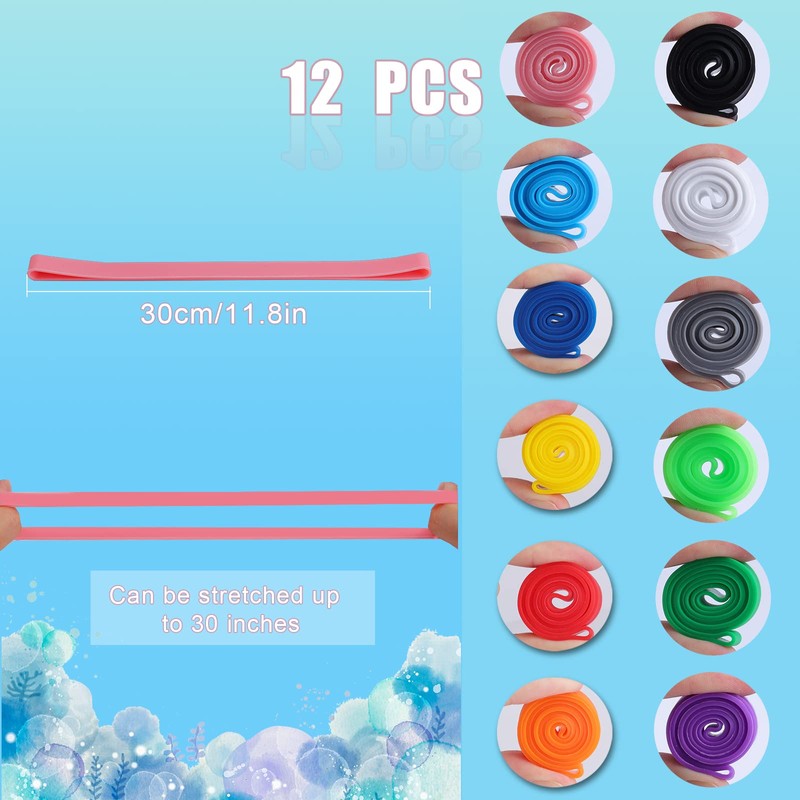 KINBOM 12 Pcs Beach Towel Bands, Rubber Elastic Beach Towel Holder Beach Accessories, A New Alternative for Beach Chair Clips, Multicolor Towel Bands for Beach Chairs Swim Vacation (11.8x0.4 Inch)