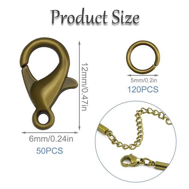 - Package Includes: You will receive 50pcs lobster clasps (12x6mm/ 0.47x0.24 inch) and 120pcs open jump rings (0.7x5mm/0.03x0.19 inch). Sufficient amount for you to make beautiful bracelets or necklaces.