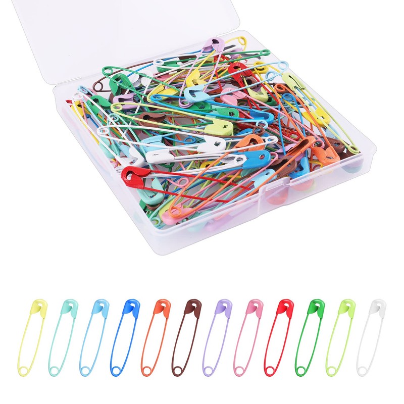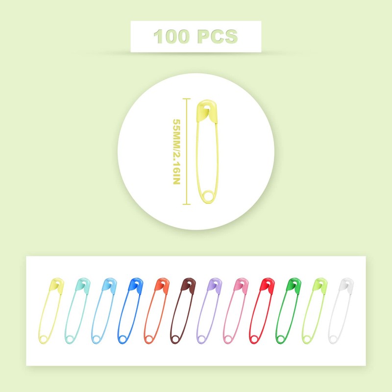 - Package contents: you will receive 100 pieces colourful safety pins large with a length of 55 mm. Enough large for more uses. All of them are neatly packed in a plastic case for easy storage. Sufficient quantity and different colours can meet your needs in clothes and sewing.