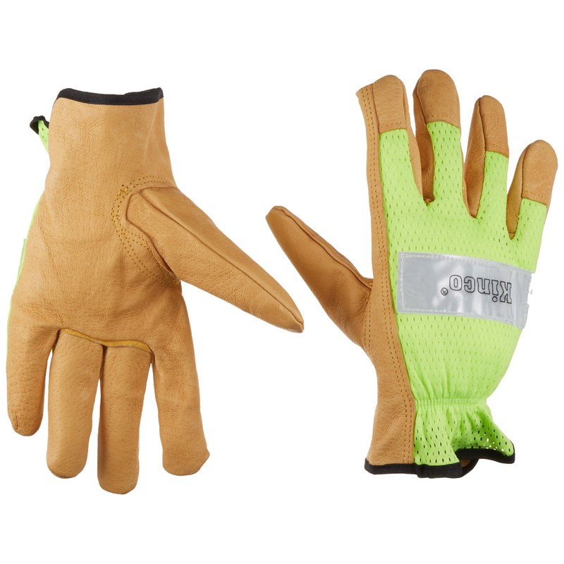 These safety lime Kinco gloves are a perfect way to stay cool and be seen this summer. Kinco mesh back safety lime pigskin gloves are great for those hot summer days. The 3M Scotchlite reflective tape adds enhanced visibility at night.