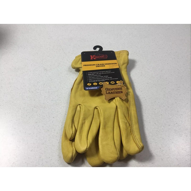 KINCO 90 XL Premium Grain Deerskin Driver Leather Work Gloves Elastic Wrist NEW