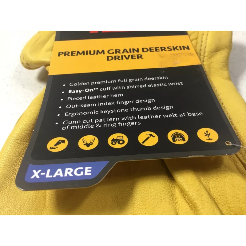 The gloves are brand new with tags and come in excellent condition. They are perfect for those who require a sturdy and reliable pair of gloves for heavy-duty work. Instead of worrying about the condition, focus on the functionality and quality of these gloves. Get your hands on the Kinco 90 XL Premium Grain Deerskin Driver Leather Work Gloves now and experience the best in comfort and durability.