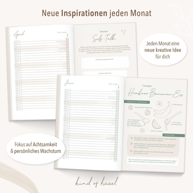 Kind of Hazel 2026 diary - A5 organiser with gold foil embossing: the high-quality book calendar combines year overview, monthly planner and weekly planner in a robust hard cover. Ideal for work, study and everyday life to plan appointments, goals and projects in a structured manner - can also be used as a diary and journal.