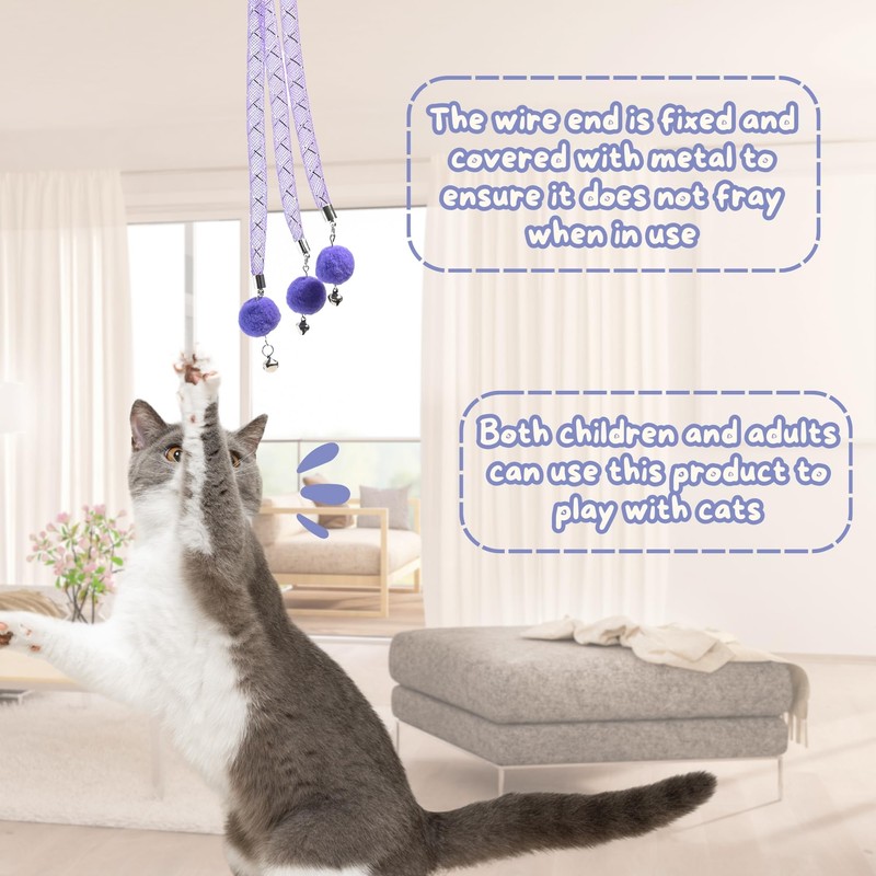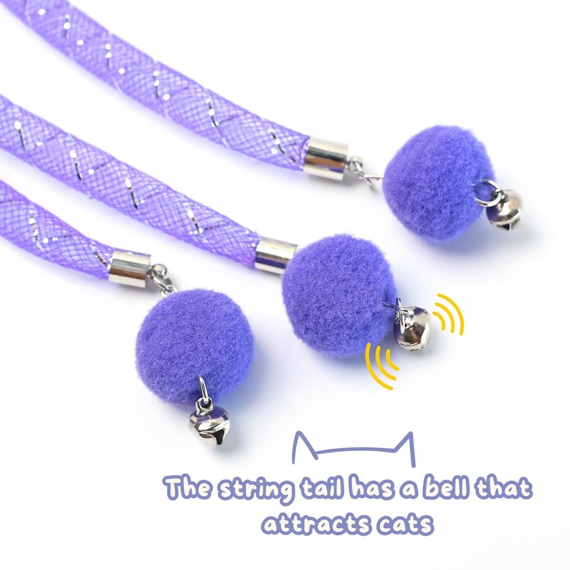 The adorable fur ball bell pendant draws your cat's attention without fear of harm to their claws, while the mesh micro-elastic silver wire rope adds an extra layer of excitement to play. Designed with resilience in mind, the steel wire beading ensures durability, making this fishing pole cat toy perfect for even the most enthusiastic play sessions. Elevate your cat's playtime with the Elastic cat fishing pole toy!