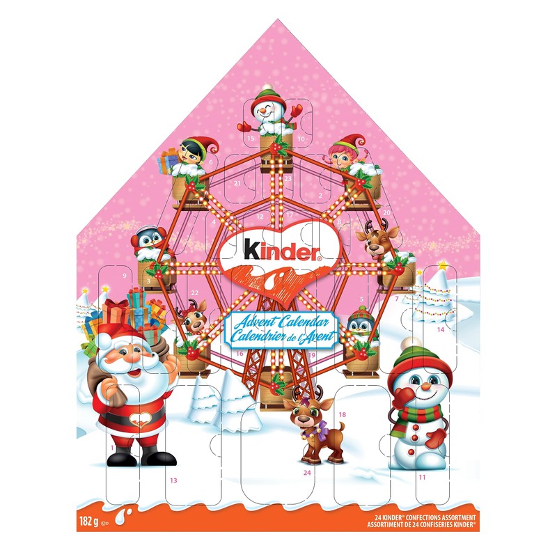 - Each advent calendar features a variety of 24 delicious individually wrapped Kinder treats to help count down the days until Christmas