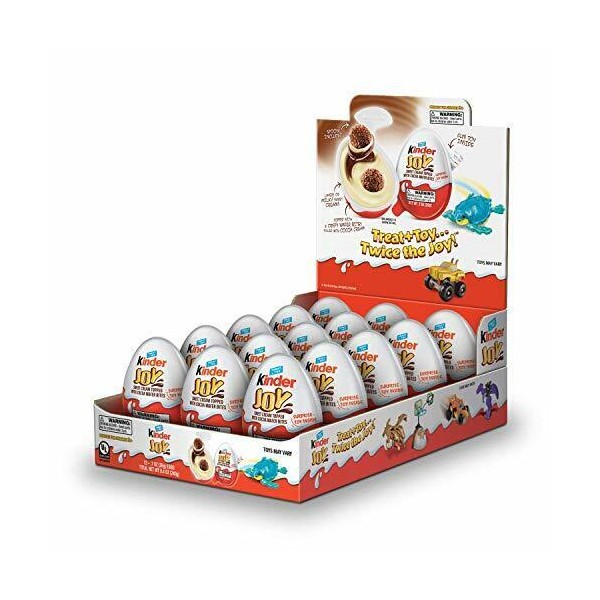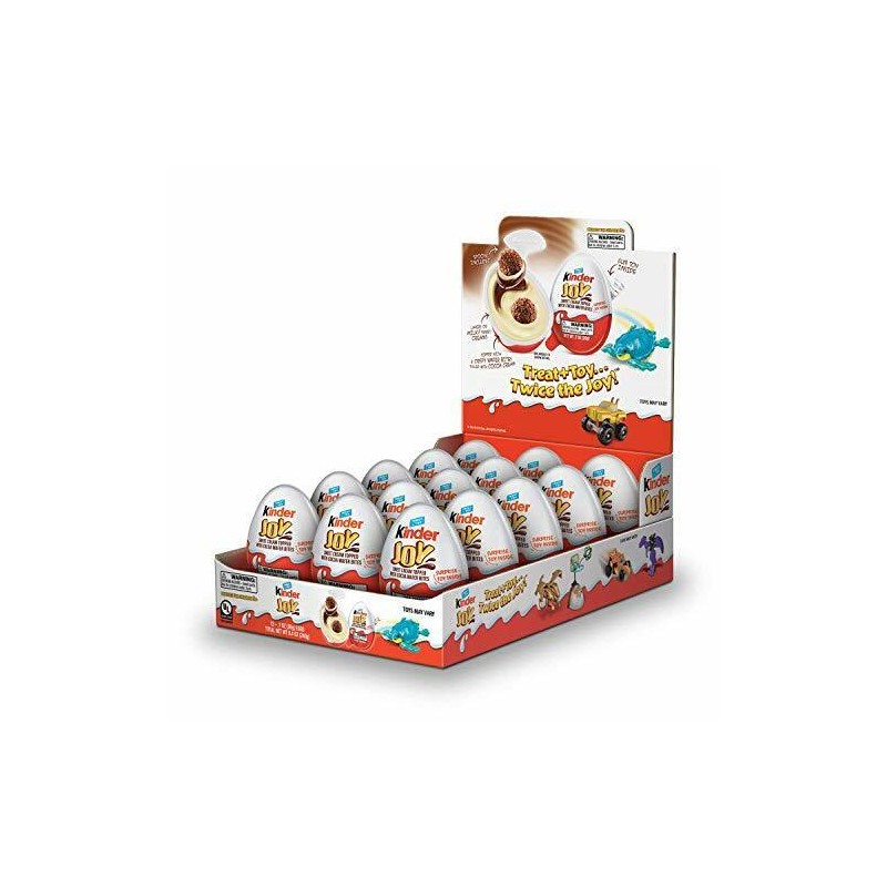 Treat + Toy?Twice the Joy! Open up the iconic Kinder JOY egg, and share a moment of surprise and delight. One side holds a delicious treat: two layers of milky sweet creams, topped with two crispy wafer bites filled with cocoa cream. The other side holds an exciting mystery toy, made to extend the fun of playing beyond the excitement of discovery.