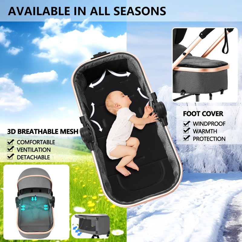 - Convertible Baby Stroller: Can convert to a bassinet; Reversible mode to meet various needs; High landscape protects baby away from car fumes; Forward seat for view outside; Backward mode promote parent-child interaction