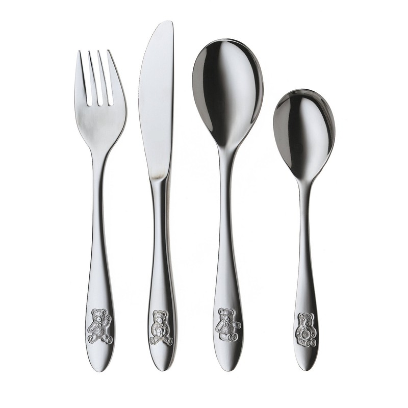 - The children's knife has a slight serrated edge. The spoon edge of the spoon has rounded edges, and the short blunt prongs of the children's fork adapt to small children's mouths