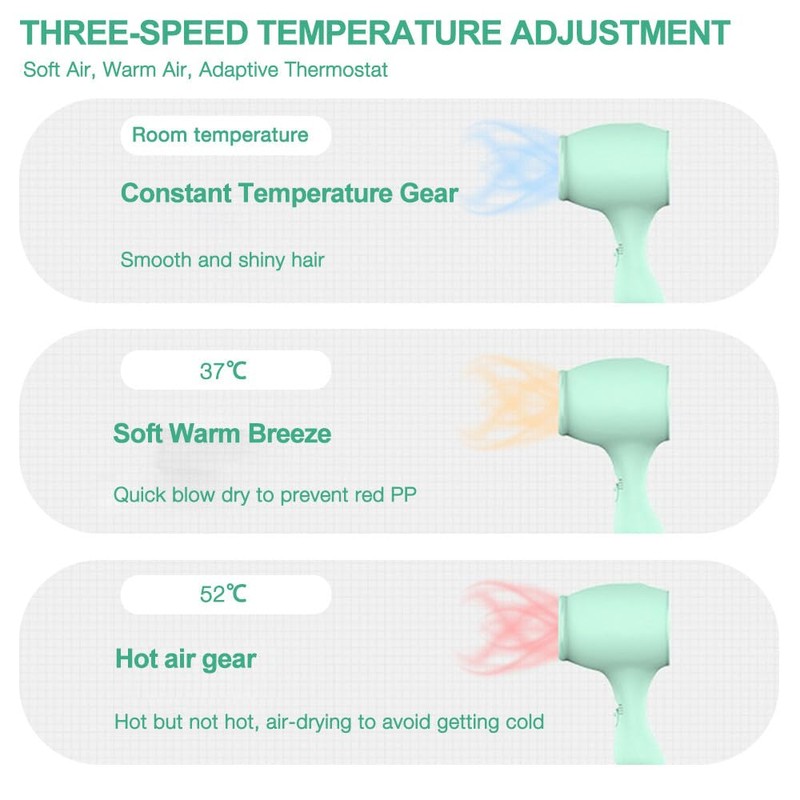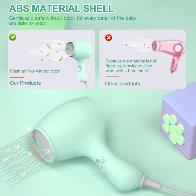 - 🎉【Sicherheitsmaterial】Anti-Verbrühung Design mit Kindern Grad ABS-Material. Hydratisiertes haar mit mehr Glanz und für gleichmäßige Wärmeverteilung. Kinderfön haut-modus mit temperatur niedriger als 37℃ geeignet für trockene Babyhaut, sagen Sie nicht zu Ausschlägen.