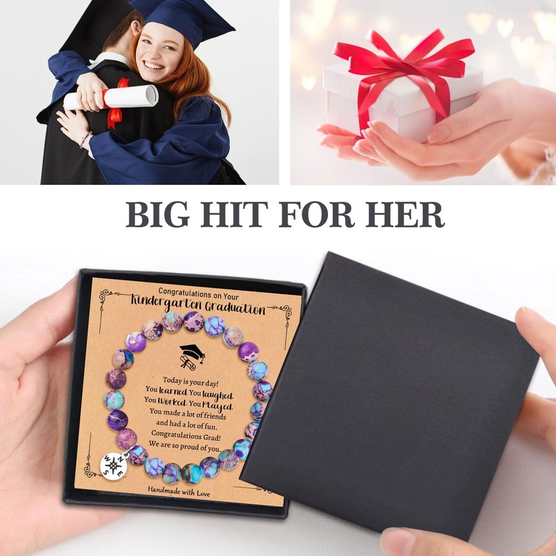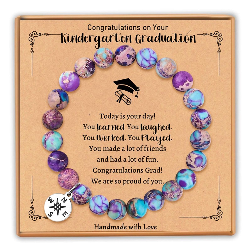 - Imperial Jasper & Meaningful Compass Charm --This Tirdkid Kindergarten Graduation Bracelet combines high-quality 8mm genuine Imperial Jasper beads and a symbolic Compass Charm. The Imperial Jasper instills fearlessness, security, and strength in young graduates, making it an ideal gift for the Class of 2025