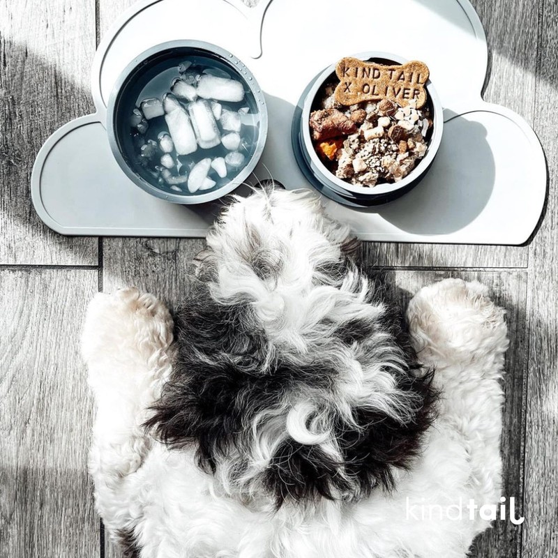 The 40-oz outer water bowl boasts a non-skid silicone base. For much-needed stability during feeding time, the inner bowl, which can hold 2.5 cups of either wet or dry food, attaches to the lid, transforming it into a non-slip dining platform for your energetic pup.