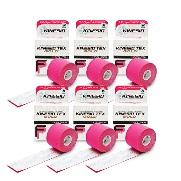 Kinesio Taping - Elastic Therapeutic Athletic Tape Tex Gold FP - Red – 2 in. x 16.4 ft - 6 Pack