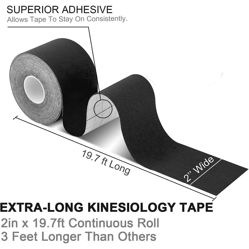 - EASY TO APPLY - Kinesiology tape measures 2 inches x 19.7 feet long ( 5 cm x 6 m ). It is uncut roll so you can CUT the size and shape which SUITS EVERYONE’S PERSONAL NEEDS.