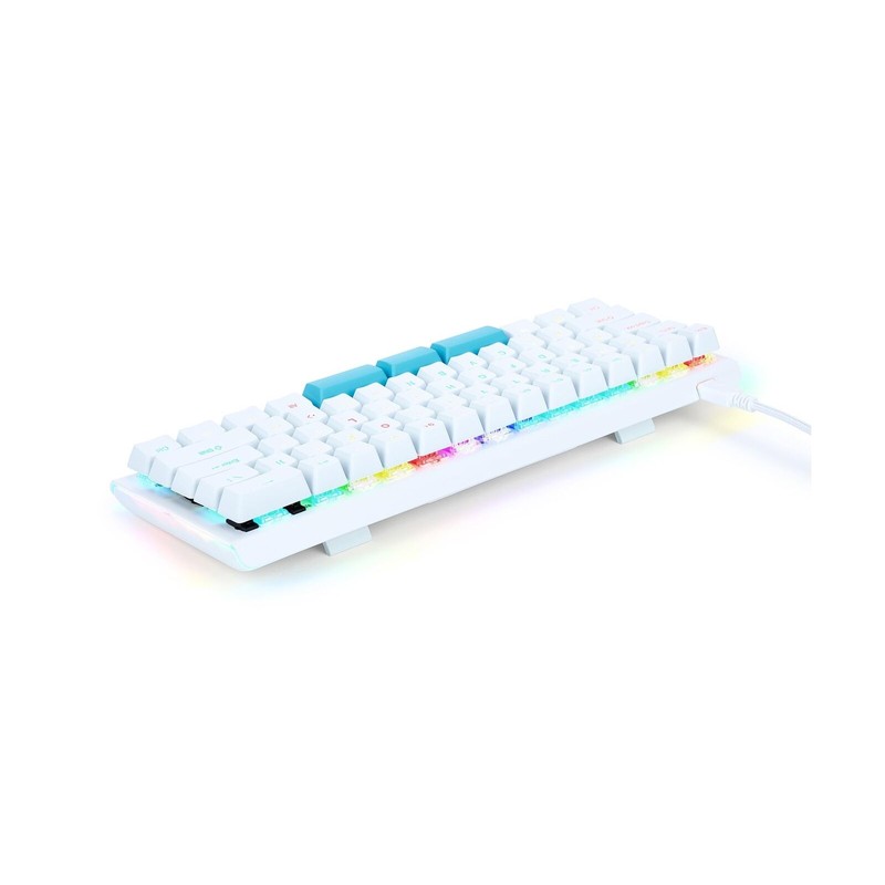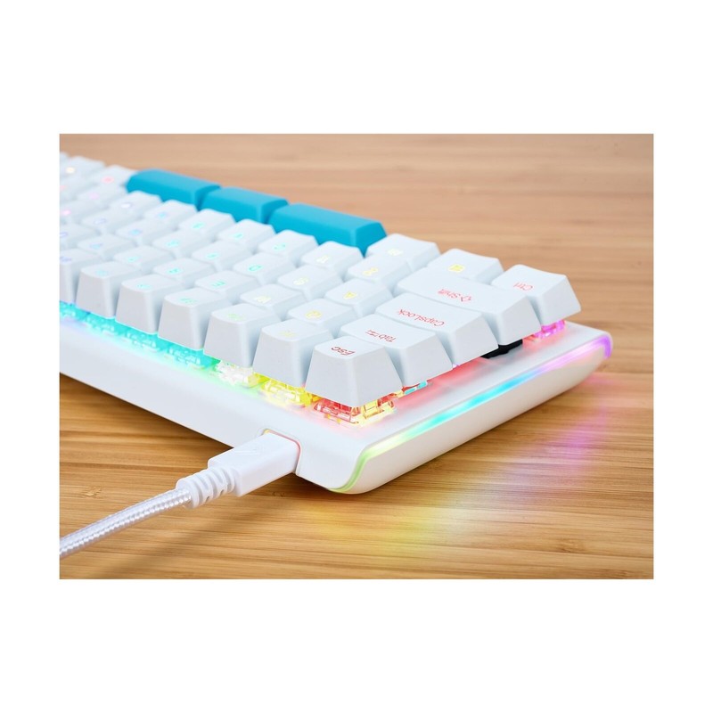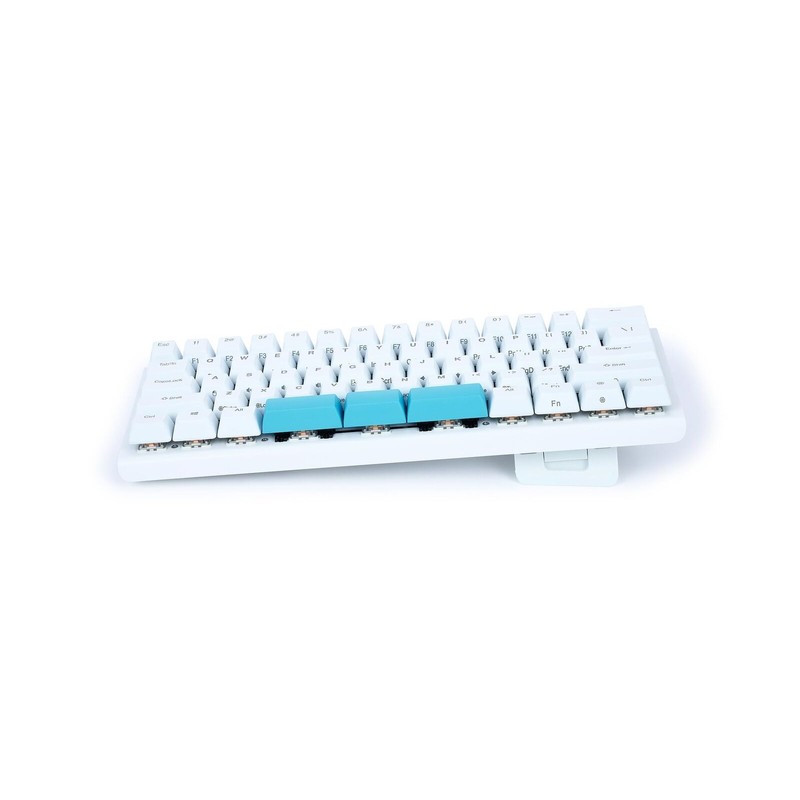 - SIGNATURE DESIGN: White keycaps and body plus contrasting blue triple space bar